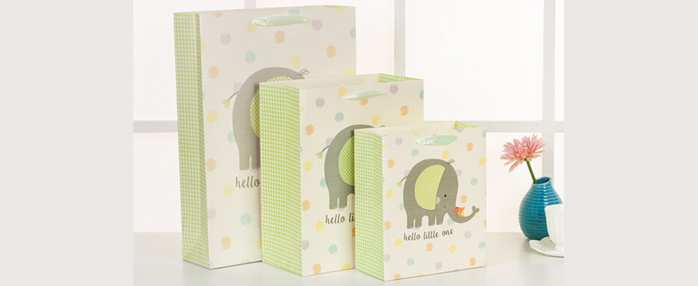 卡通大象精美化妝品白卡紙袋定制
